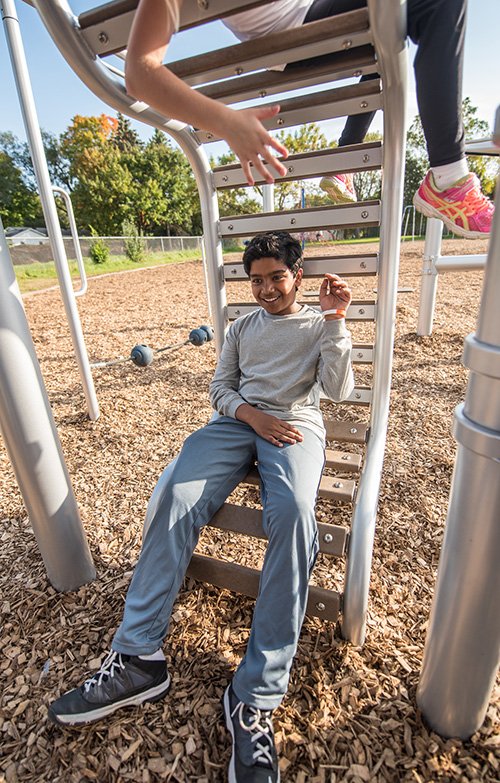 I was able to talk with students at Birchview Elementary School while they played, and they talked about their friend, Michael, who uses a mobility device. They were excited that he can actually use this equipment, and how it’s his favorite on the playground. Because the design is less scripted, there’s less expectation of how a user actually engages it. Smart Play: Venti allows for more natural inclusion through the addition of many access points and a centralized hangout location, which was one of our primary goals during the design process.