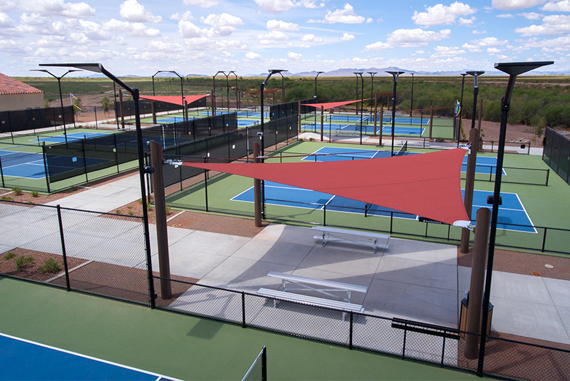Recreational areas such as tennis courts, fitness parks, playgrounds and dog parks; outdoor activity spaces such as zoos, amusement parks, waterparks and splash pads; public/community spaces like pavilions; and corporate locations, hotels and airports all benefit from the addition of commercial shade structures. Our sun shade structures are available in a variety of standard shapes and sizes, and these industrial shade canopies can be customized to fit the unique requirements of your environment.