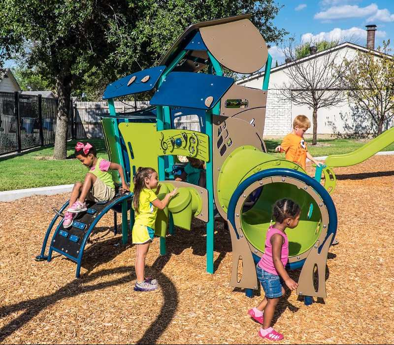 Smart Play® playstructures pack a lot of activities into compact structures, taking kids from early crawling exploration on up to active climbing and social play to a challenging course for older children. This line helps span several critical periods of childhood development, making it ideal for childcare, early learning centers, neighborhood playgrounds and schools.