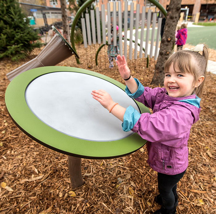 St. David’s Center for Child & Family Development has been fortunate enough to install a brand new all-inclusive playground, which includes a new area filled with the Rhapsody Outdoor Musical Instruments ready and waiting for creative discovery. Music is an art form that humans were creating before the dawn of the written language. Therefore, it can be reasoned that it is one of the most natural ways in which a developing child can learn. The musical instruments at St. David’s Center including the Chimes, Vivo™ and Animato™ Metallophones, and three drums create the opportunity for children to foster fine and gross motor abilities, observe and explore scientific relationships, nurture creative imagination, and grow social interaction skills in a joyous, engaging and natural way.