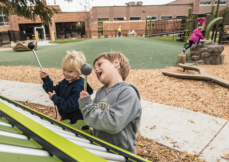 Including musical elements like our Rhapsody® Outdoor Musical Instruments in your playground can enhance auditory skills and creativity. Install a selection of chimes, metallophones and drums to engage children in musical exploration. These features encourage collaboration, rhythm recognition and the development of fine motor skills.