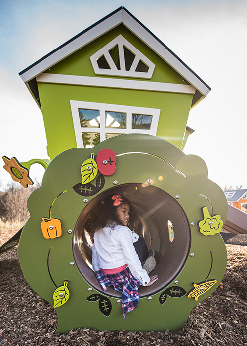 Best of all, the Nook and Loft playstructures take kids from early crawling exploration on up to active climbing and social play in a fun, whimsical environment. Whether playing inside or outside the Nook, the intentional sight lines let you keep your eye on little crawlers and early walkers at all times. And with 20 play activities, the Loft encourages imaginative play while helping to develop both large and small motor skills as well as strategic thinking.