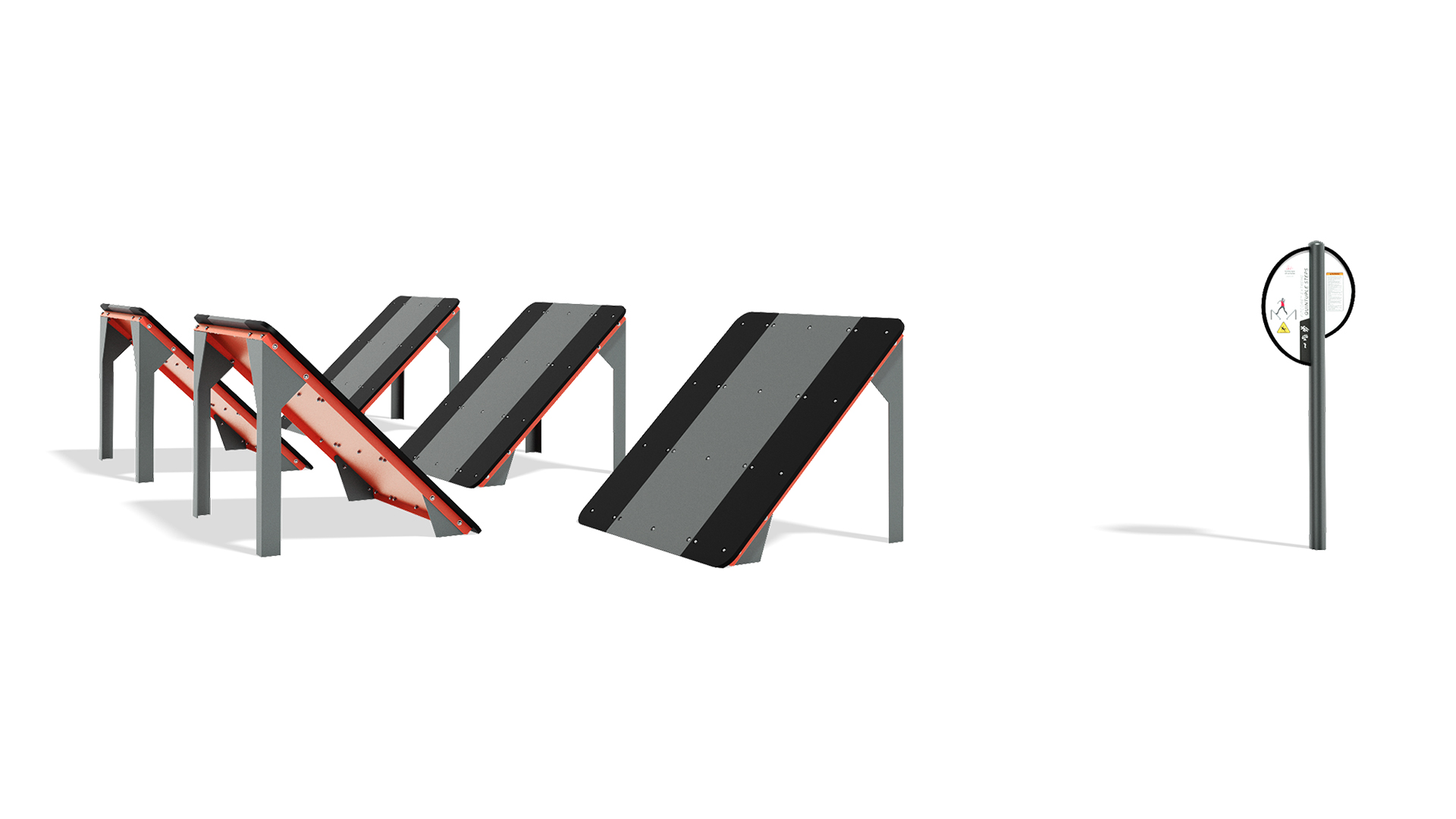 Extreme fitness is gaining popularity based on current TV shows, and now you can create your own custom fitness course using combinations of pre-designed challenges to encourage kids, teens and adults to get and stay fit. Each piece can also be a challenging obstacle for freerunning.