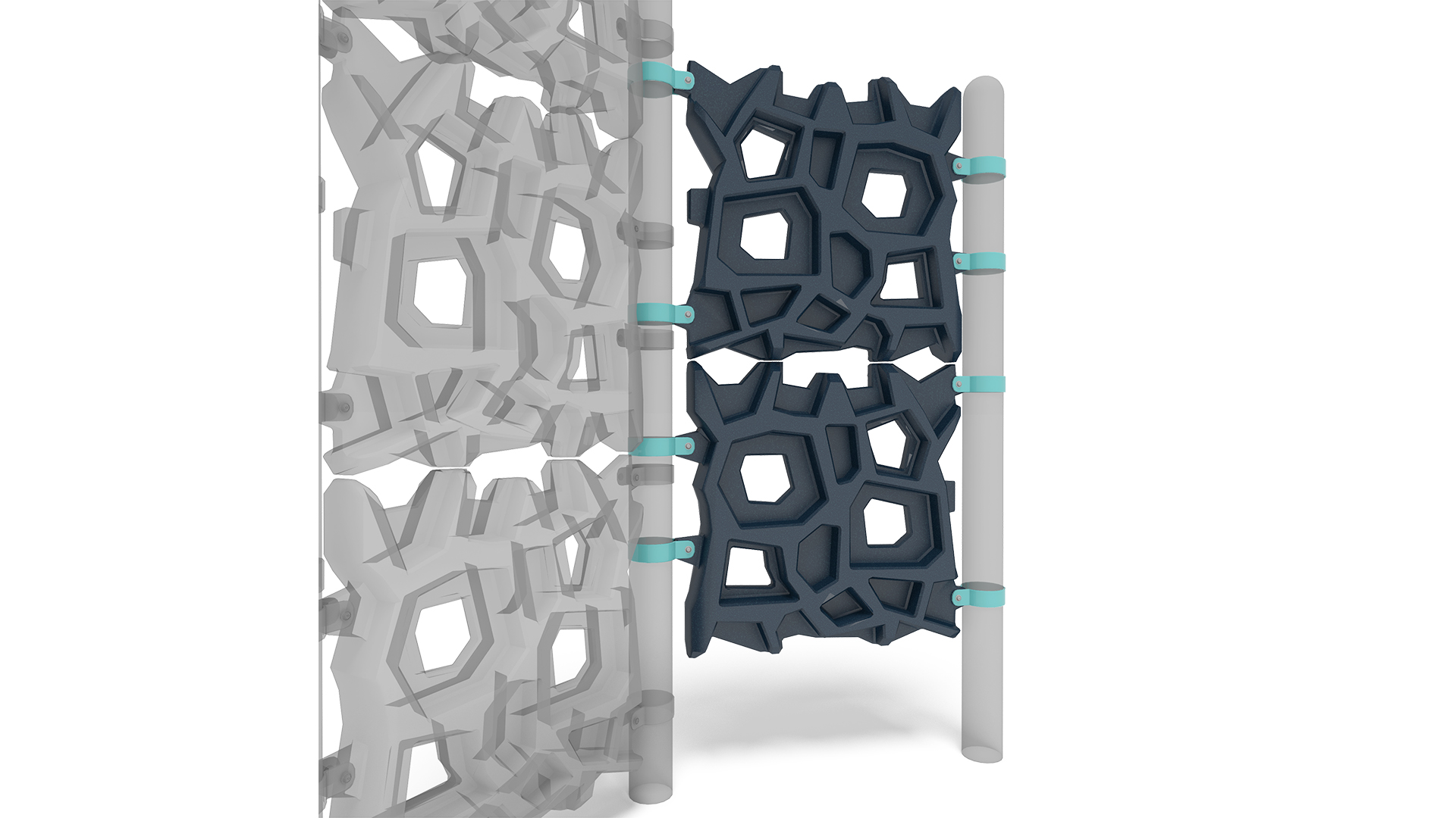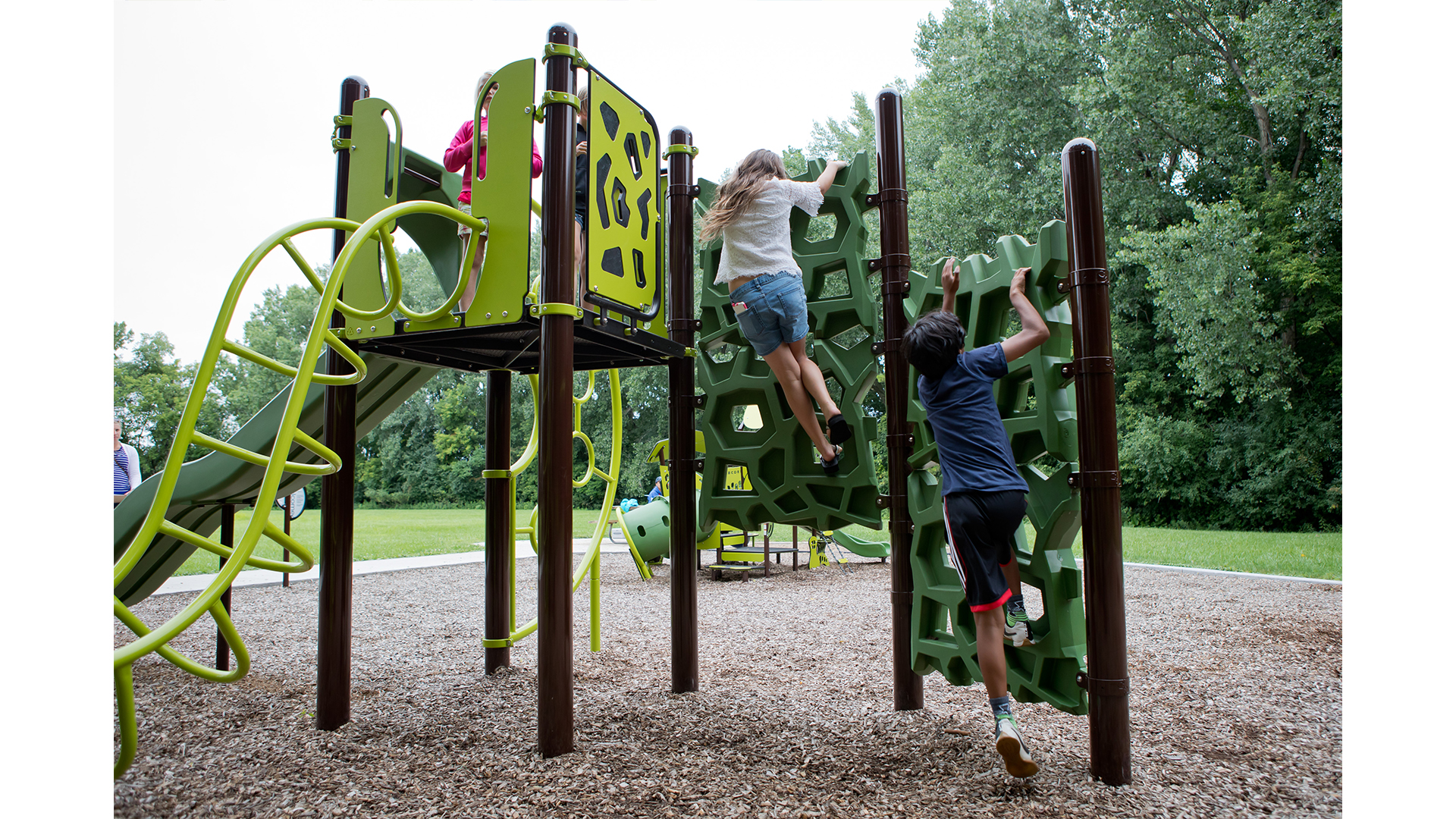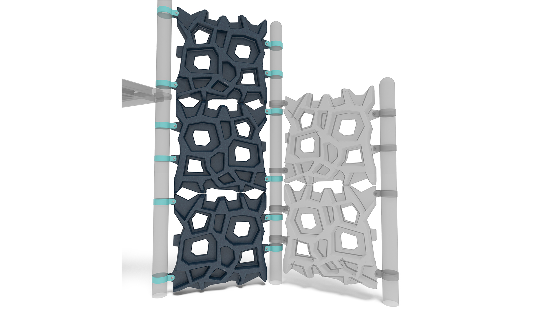 Patented GeoPlex® climbing ropes and panels can be transformed into a wide range of climbers, towers, towers with nets, and post-and-deck attachments for PlayBooster® playgrounds for kids ages 5 to 12. These abstract, geometric designs come in many colors to create your favorite look - natural, contemporary, space-ace, circus and much more!