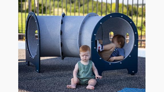 Sight, sound, smell, touch and taste -- children learn about the world through their five senses. A playground is not only a place to move and challenge the body, but it's also a place for sensory learning and exploration. Our sensory play components like sandboxes and sand tables allow children to experience the tactile sensation of sand -- how it scratches the skin, how it sifts through the fingers, how it's cooler the further you dig. The paint panel is both a tactile and visual exploration as children feel the slippery slide of finger paint on the panel and see the bright color combinations emerge. The crawl tunnels and the cozy dome are sensory play features that offer a place to quiet the senses -- a contrast from the sensory rich world around them when they need a break. These sensory play components are made for kids of all ages and abilities.