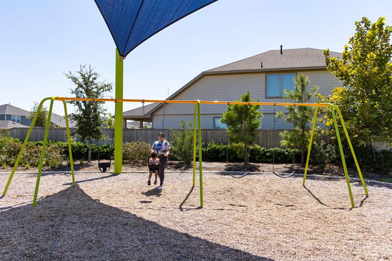 - Accommodates two swings per bay