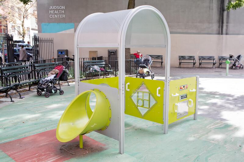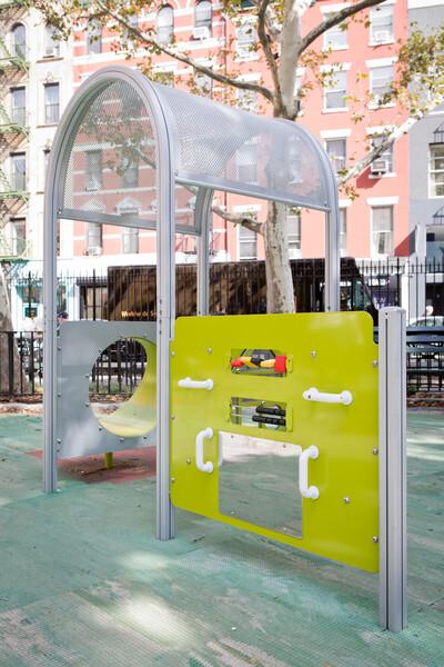 The PlayShaper® Arch Roof is constructed from one piece of durable perforated steel for many years of use!