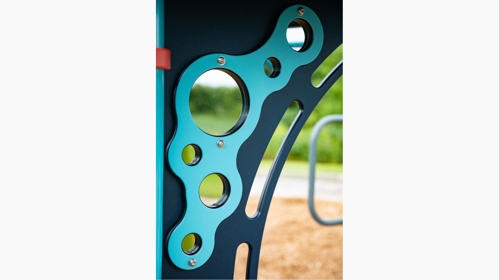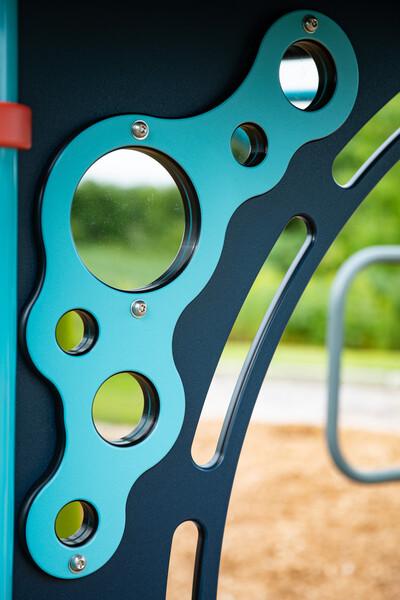 A cool color palette accentuates this flowy design that honors the graceful motion of ocean waves. Young imaginations are encouraged to go with the watery flow as they surge forth to encounter marine life, discover buried treasure and explore the oceans of activity built into the Smart Play® BeachComber. Introduce this seaside attraction to any playground for hours of nautical fun!