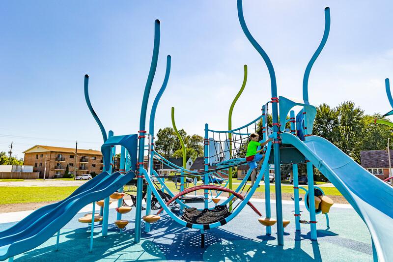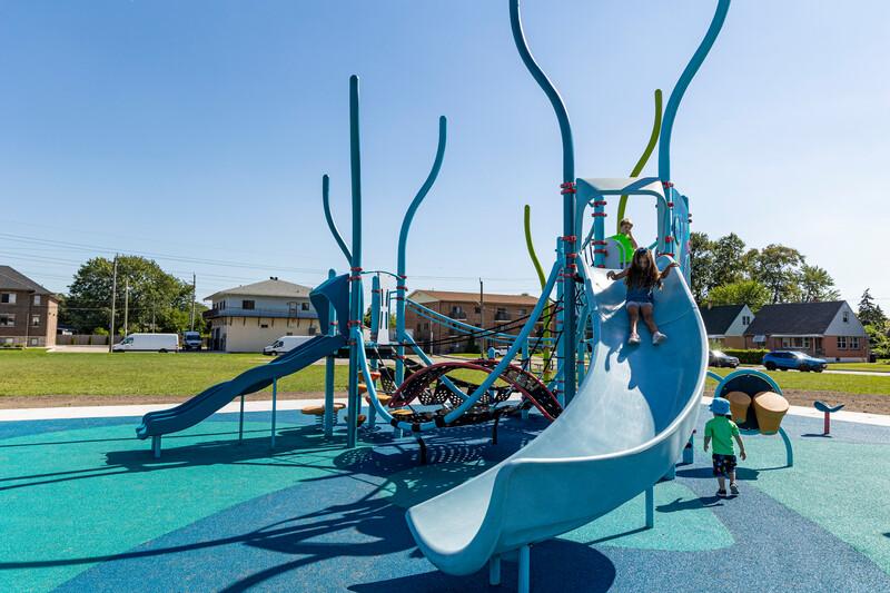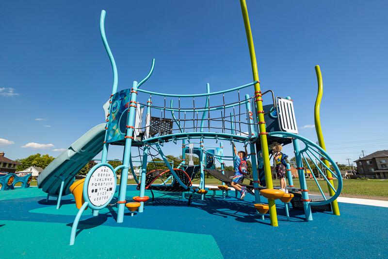 - Innovative design includes lots of activities in a compact space, requiring less surfacing