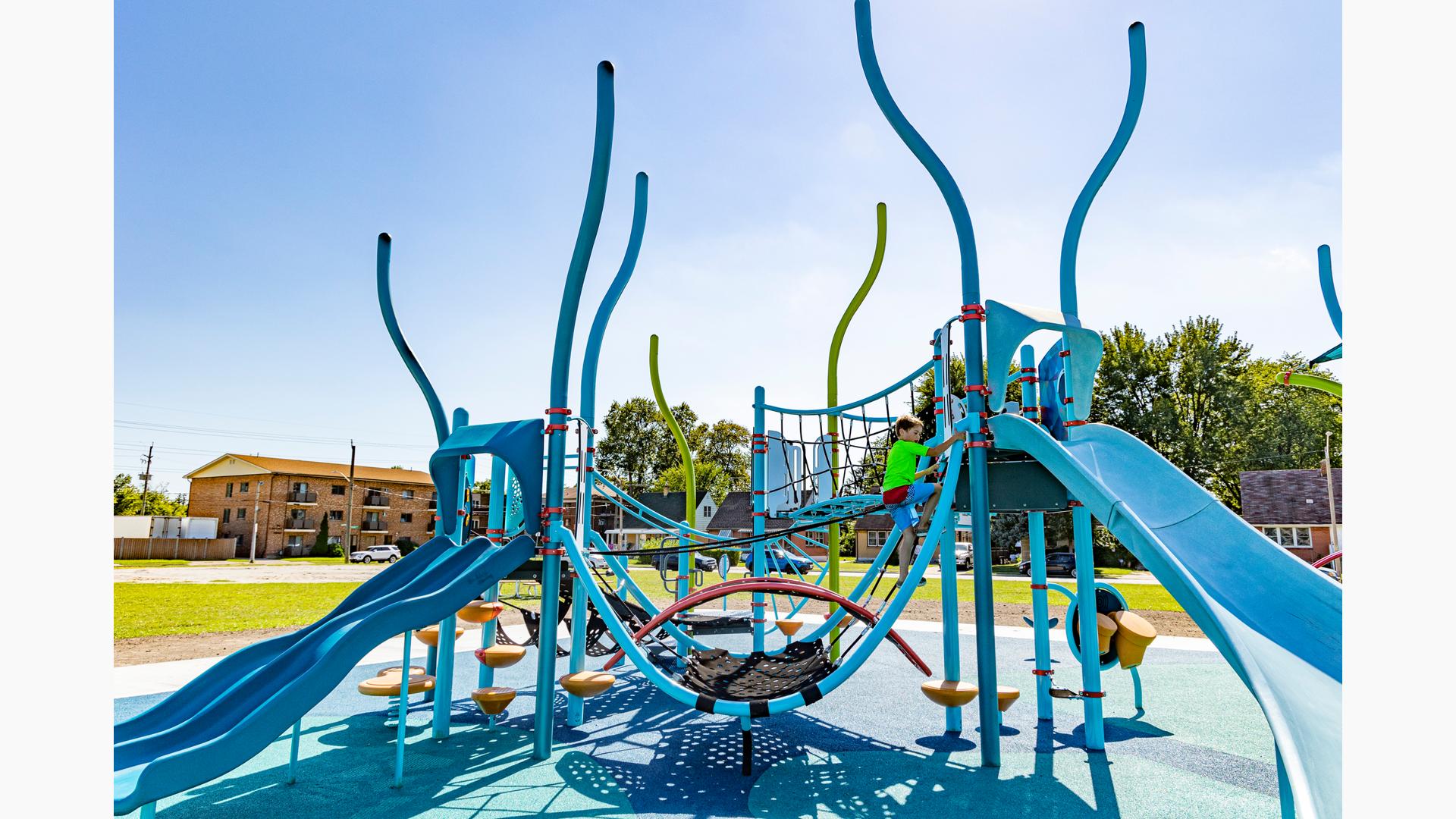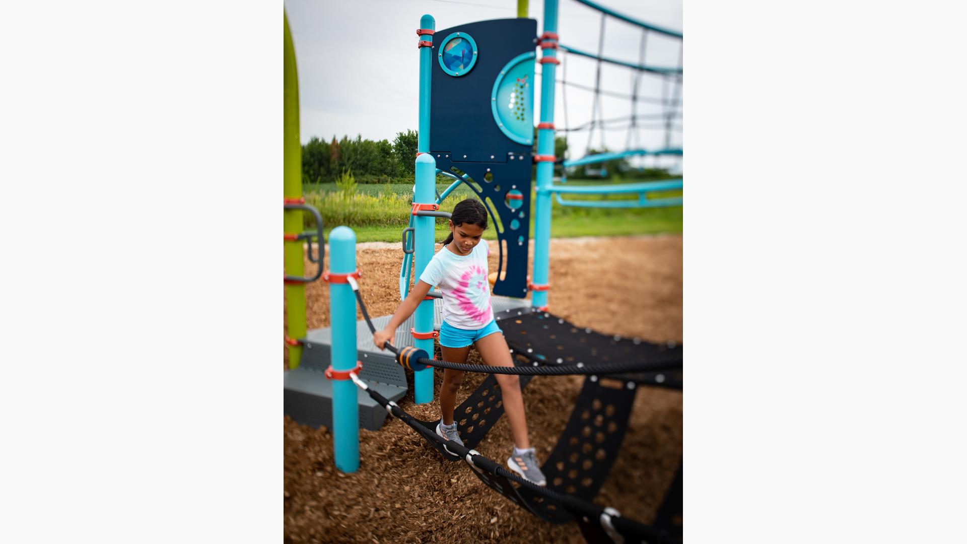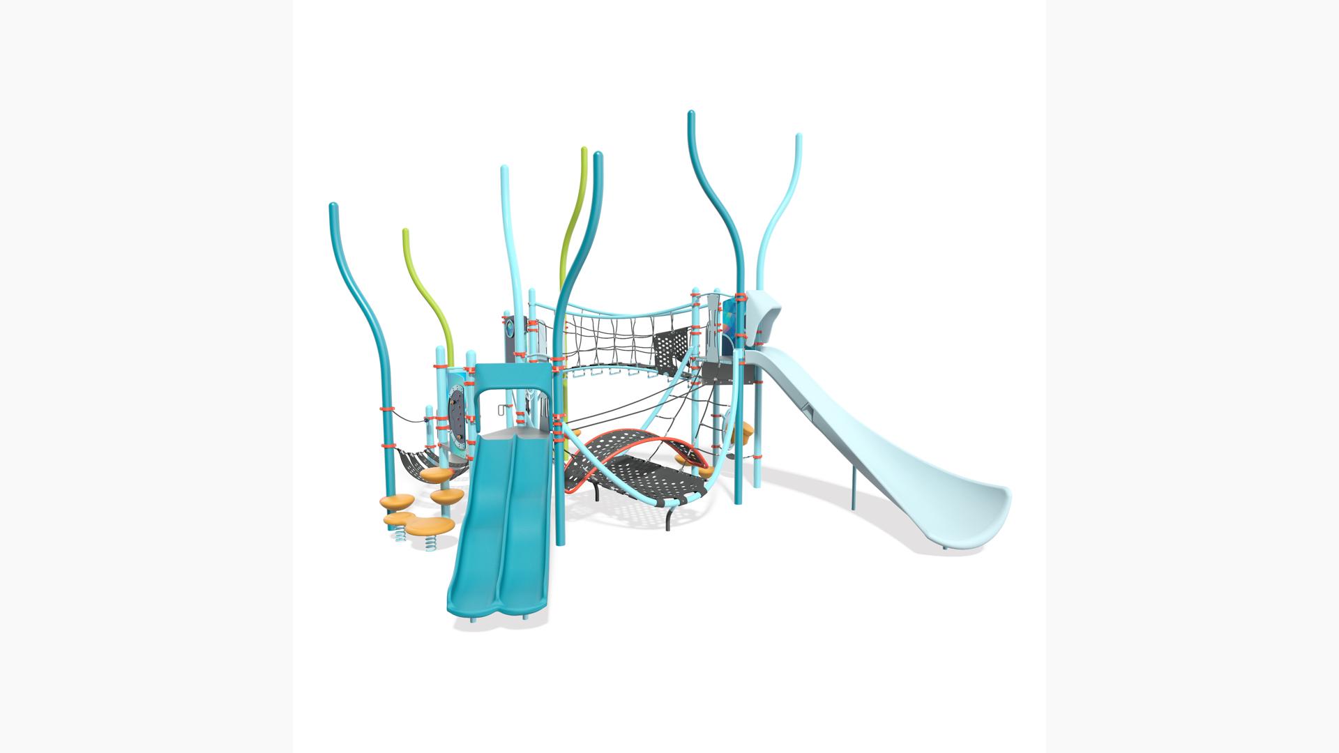 Grab your best beach buddy and ride the wild surf on this wondrously wavy playstructure. Kids will love creating seaworthy adventures as they sail across the Tidal Wave Climber, wind their way down curvy slides and hop-hop-hop over the Pod Climber®.