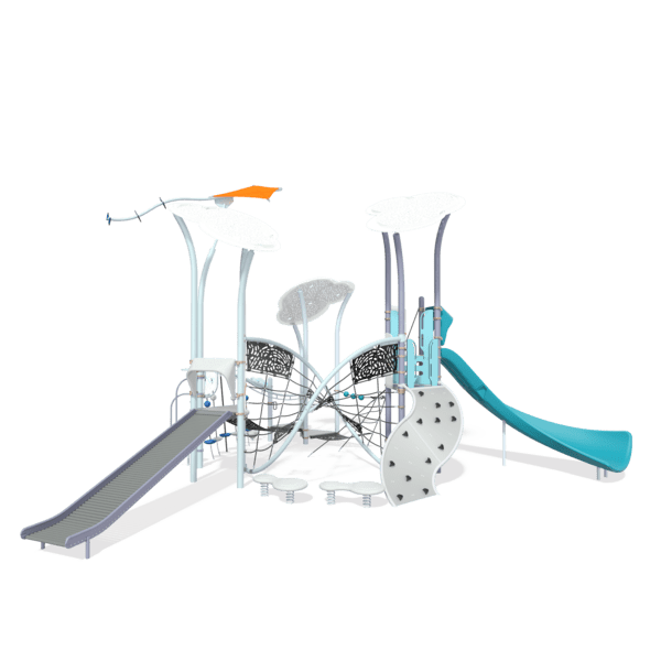 Offering everything you need for a thrilling atmospheric adventure, from a swift Alpine® Slide ride to the twisted highs and lows of the mighty Flex Climber. Kids will flock to this flowy circuit of lighthearted fun that interconnects multiple levels of play amidst its light and airy color palette.