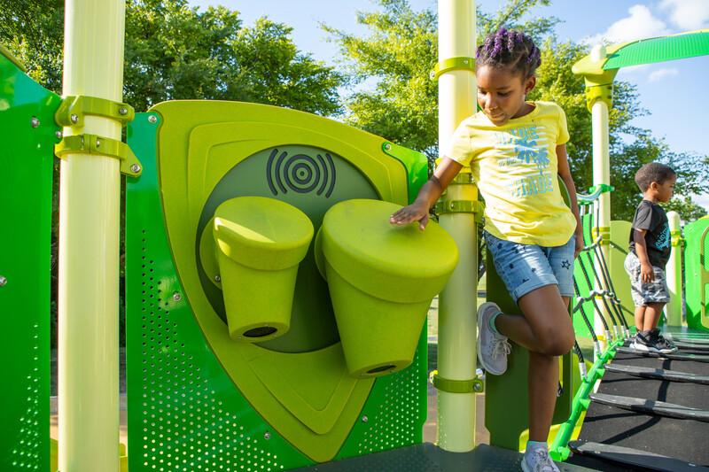 The Bongo Vibe Panel™ lets kids make their own beautiful music on the playground. Encourages the creation of new games, rhythms and songs. The Vibe® design is a stylish combination of perforated steel and playful rotomolded plastic that modernizes the traditional post-and-deck playsystem.Features