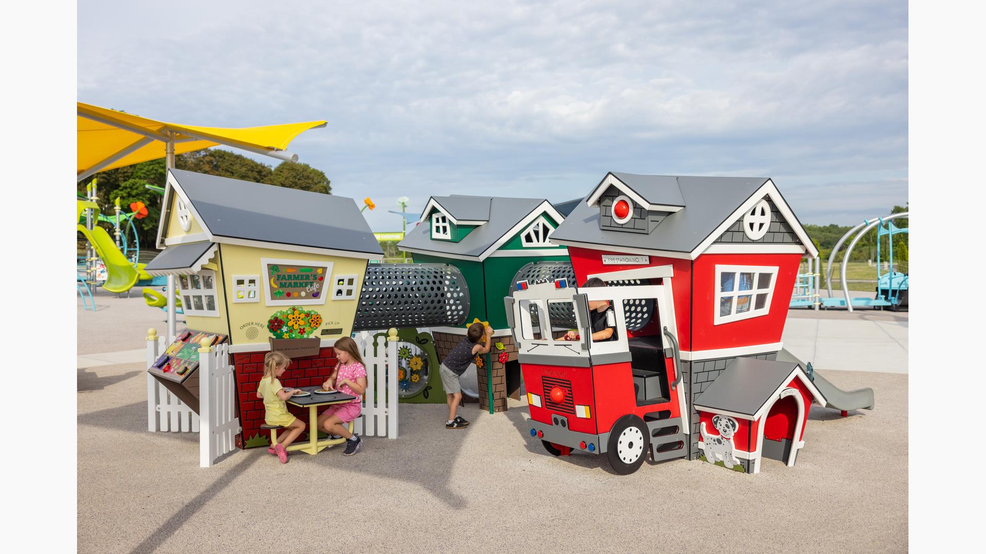 Video features the Smart Play connecting Loft, Fire Station, and Market Café with elevated crawl tunnels that creates a village for kids to explore.