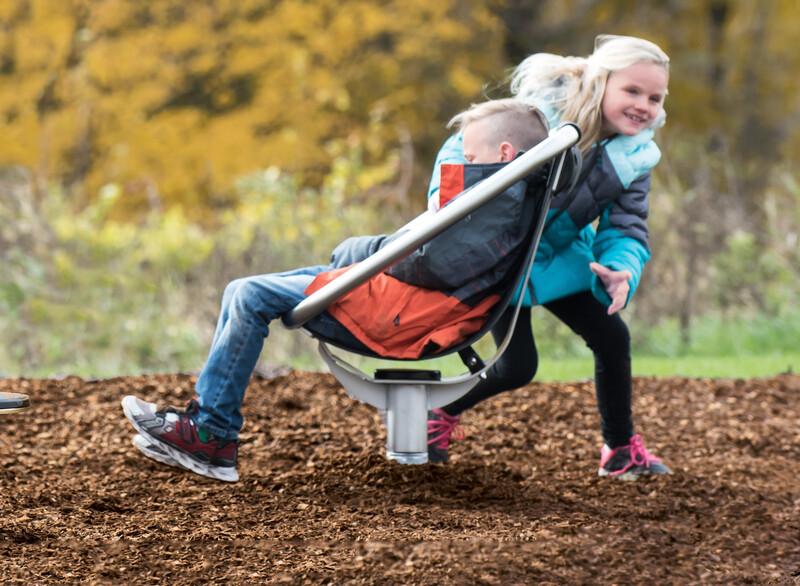 The stainless steel frame and textured black belting lend a designer look to the Chill® Spinner. Enjoy a thrilling ride, or just relax in the comfortable seat. The spinning motion offers vestibular stimulation and helps kids understand centrifugal force and cause-and-effect.