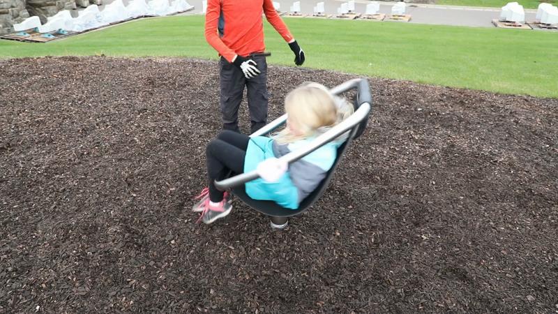 [video: fade in to young girl breathing heavily as she spins young boy in Chill Spinner Stainless Steel. Camera zooms in closer.]