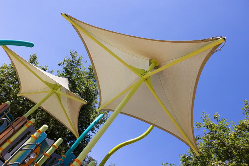 The CoolToppers® Single Post shade system protects kids from up to 97% of the sun's UV rays and keeps playground surface temperatures up to 30 degrees cooler. CoolToppers add design flare and a colorful accent to your playground design. Provides visual interest for your playstructure.