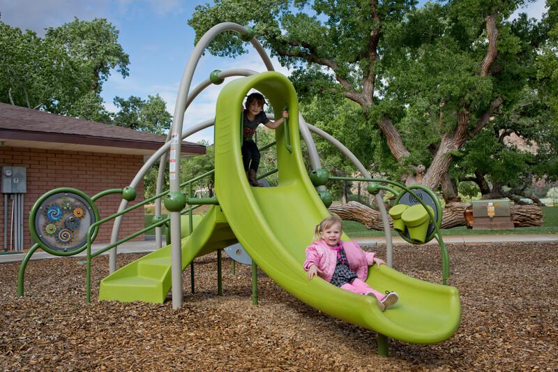 - Handbars inside top of slide help preschoolers gain balance before sliding down