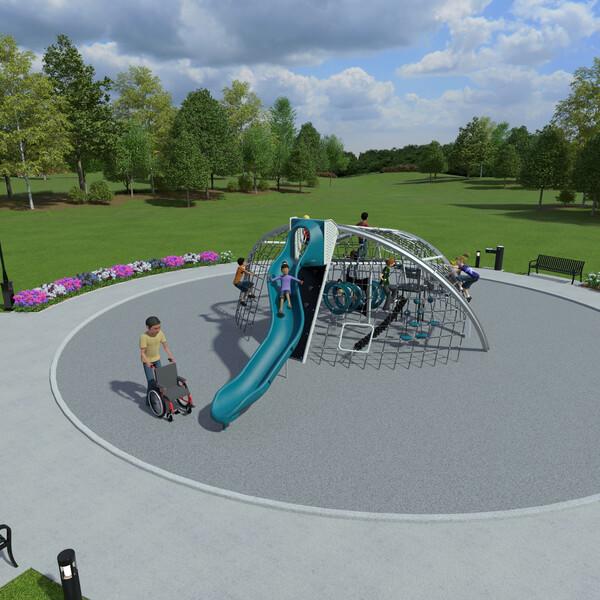 Attack the Crab Trap® with SlideWinder2®! Kids ages 5 to 12 can decide how to navigate from the outside to the inside and back again. No matter how they climb or crawl through the challenges, the open-ended play experience will keep them coming back for more. Plus, the addition of the SlideWinder2 adds more thrills to this ADA-compliant, inclusive climbing playground net structure.Features