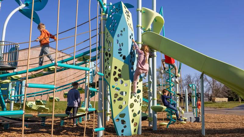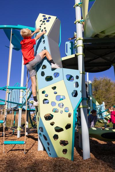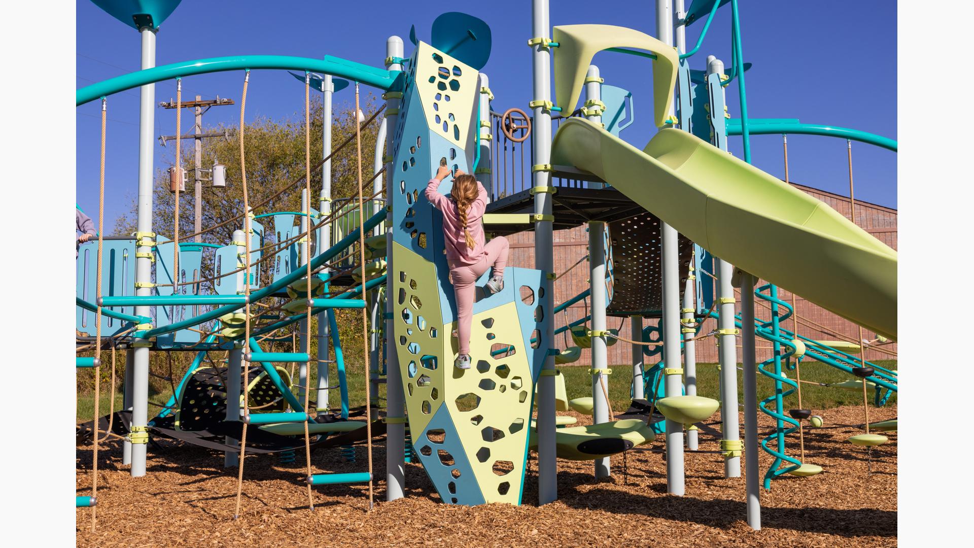 Climb the inside or outside of the Crux™ Climber by using cutouts of many sizes and shapes for hand and foot holds. Panels at different angles allow kids to make the climb more challenging, and multiple colors add visual interest.