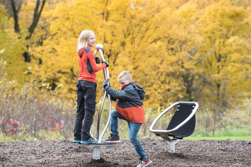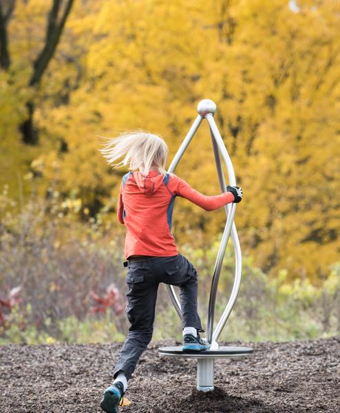 Add a designer look to any play space with the stainless steel Curva® Spinner, created to be used by one child or a group of kids. The spinning motion helps kids develop better depth perception and balance.