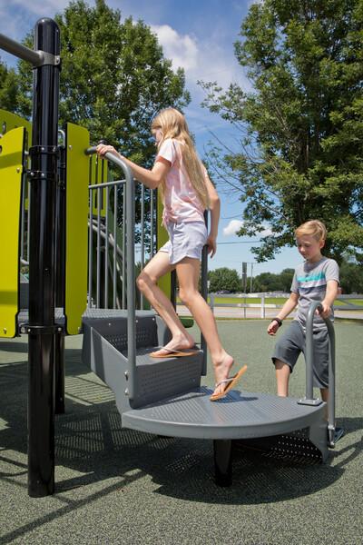 The PlayBooster® Curved Transfer Module is perfect for small spaces and lets you optimize your play space on your playstructure.