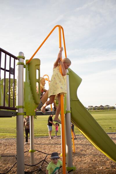 - Uniquely designed laser-cut perforated steel and polyethylene handholds help kids transition from climber to deck