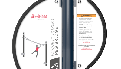 [video: Landscape Structures logo blank background. Text banner slides to middle of video text reads: FitCore Extreme challenge your athletic abilities.]