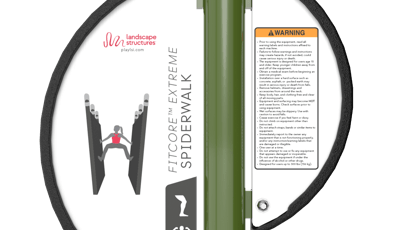 [video: Landscape Structures logo blank background. Text banner slides to middle of video text reads: FitCore Extreme challenge your athletic abilities.]