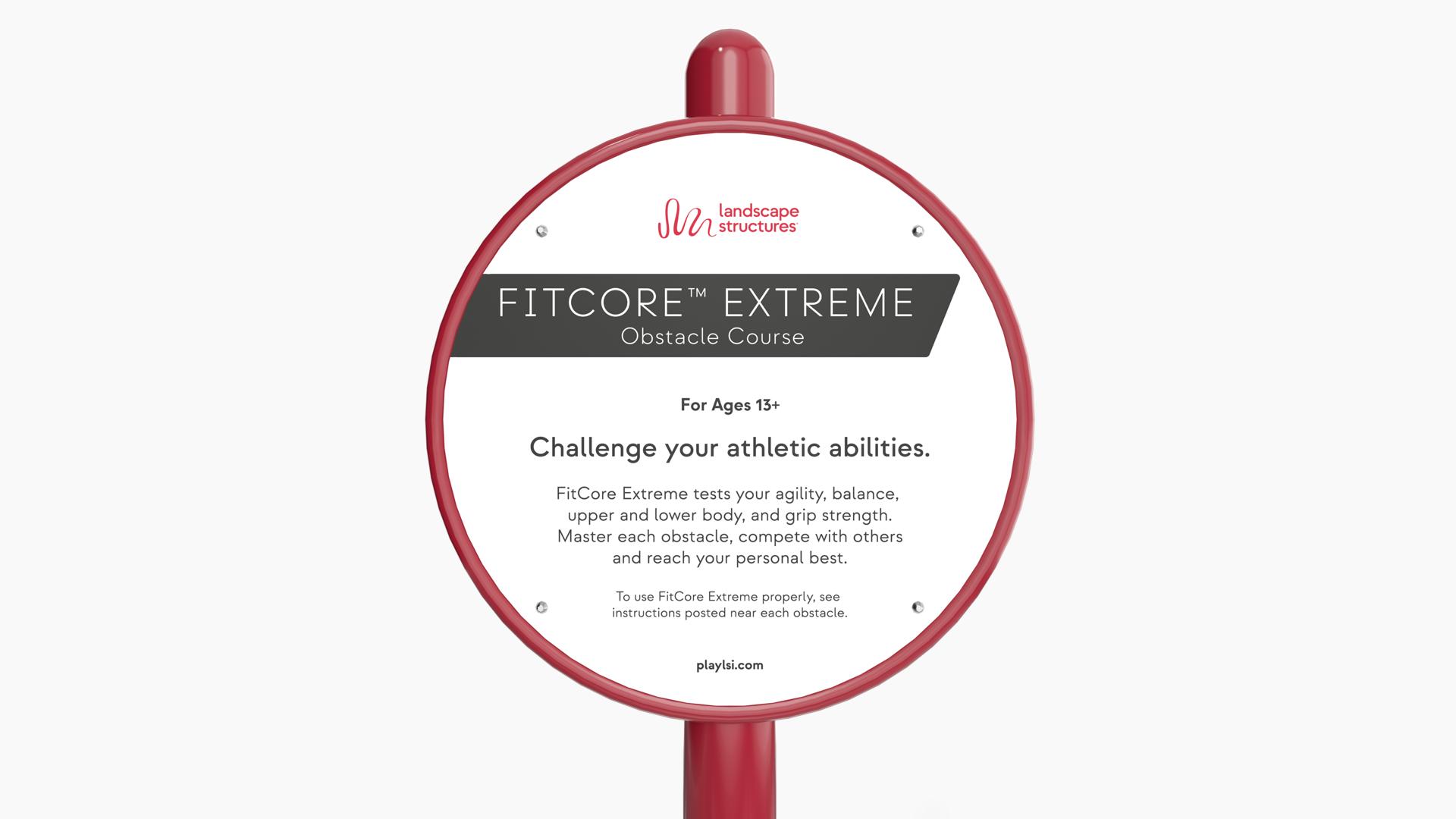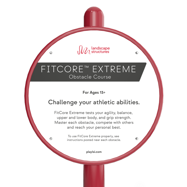 Introduce visitors to your FitCore™ Extreme obstacle course and mark the starting point or designated area with this helpful Welcome Sign. With the purchase of nine or more FitCore Extreme obstacles, you are eligible to receive a complimentary sign that welcomes users to the fitness area. Contact your playground consultant for more details.