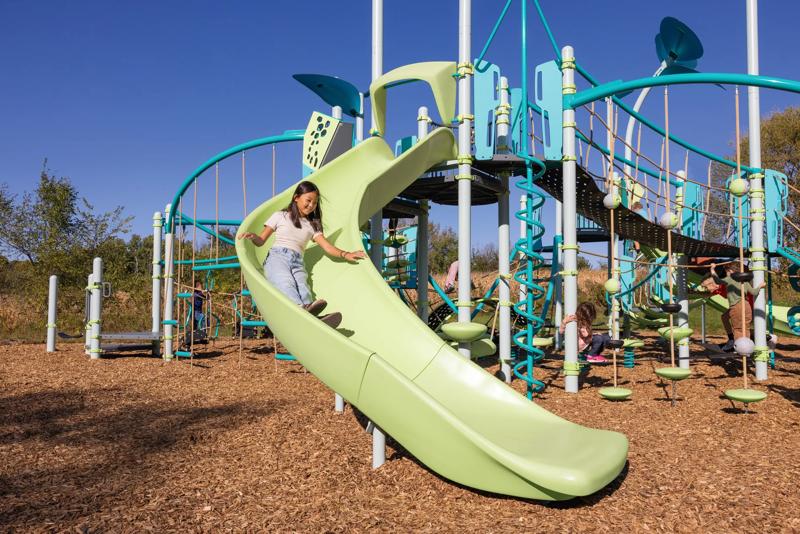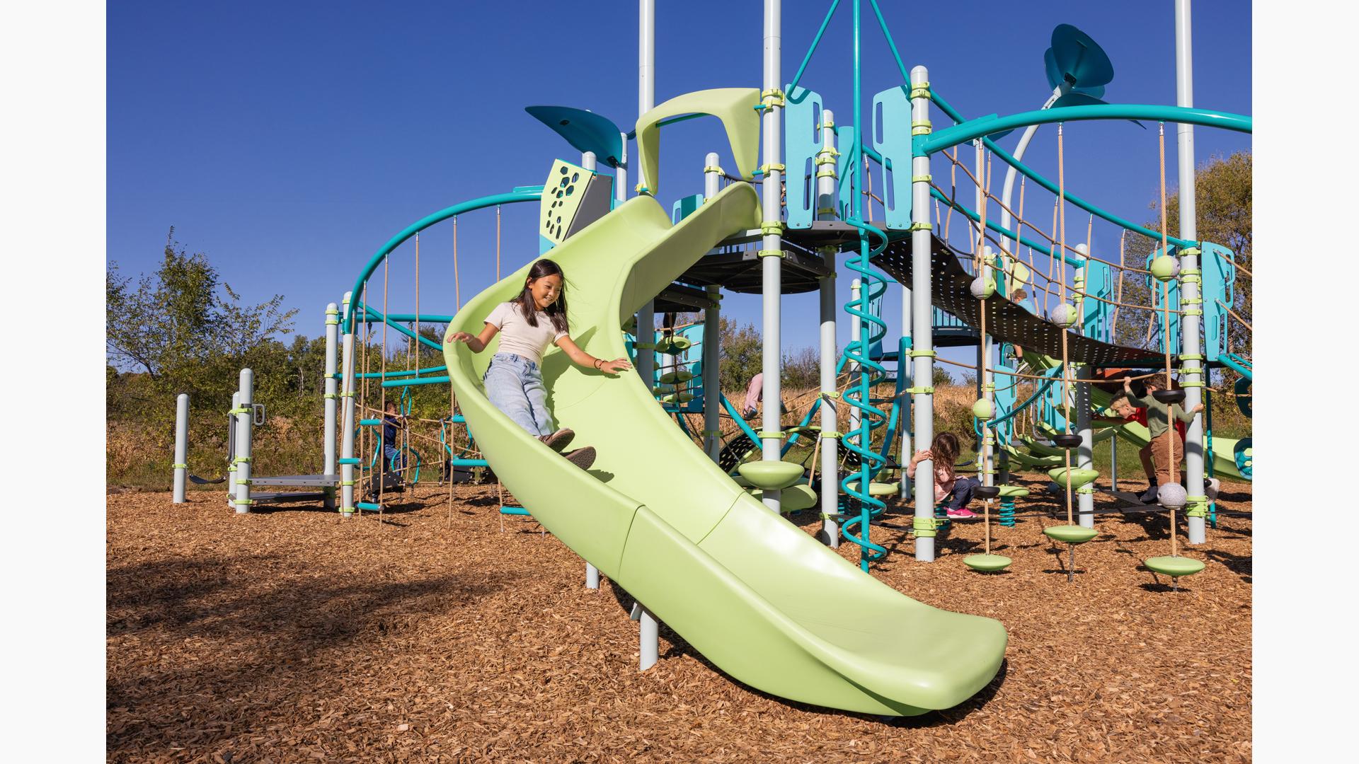 The PlayBooster® FlowWinder™ Slide delivers an exhilarating ride with beautifully engineered curves that create smooth, flowing transitions from top to bottom. Kids will love the dynamic swooping motion as they navigate this exciting slide's swerves.Features