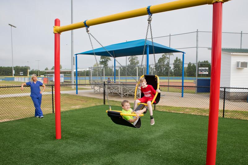 This multi-user swing is one size fits all, from two kids to a multi-generational family. Easy to access on an economical swing frame, it’s a great way for siblings, parents and grandparents to all enjoy time together. The Friendship® Swing is an ideal spot to gather with friends or even meet new friends because everyone loves to swing.