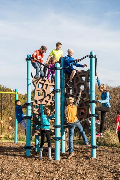 - Climbing panels include a variety of hand and foot holds to encourage strategic planning
