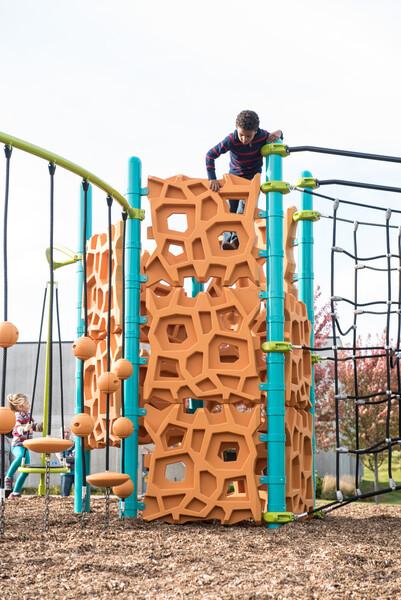 - Climbing panels include a variety of hand and foot holds to encourage strategic planning