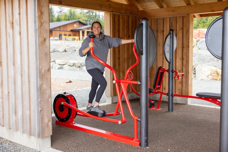 Video features the Health Beat outdoor exercise equipment Elliptical system.