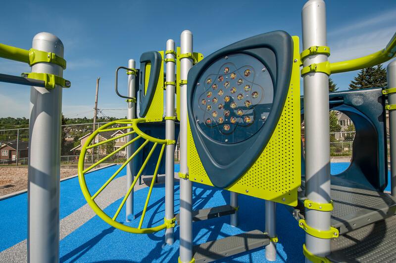 This unique Marble Vibe Panel™ offers a sensory-rich visual, auditory and tactile experience with its brilliant wall of marbles. The Vibe® design is a stylish combination of perforated steel and playful rotomolded plastic that modernizes the traditional post-and-deck playsystem.Features