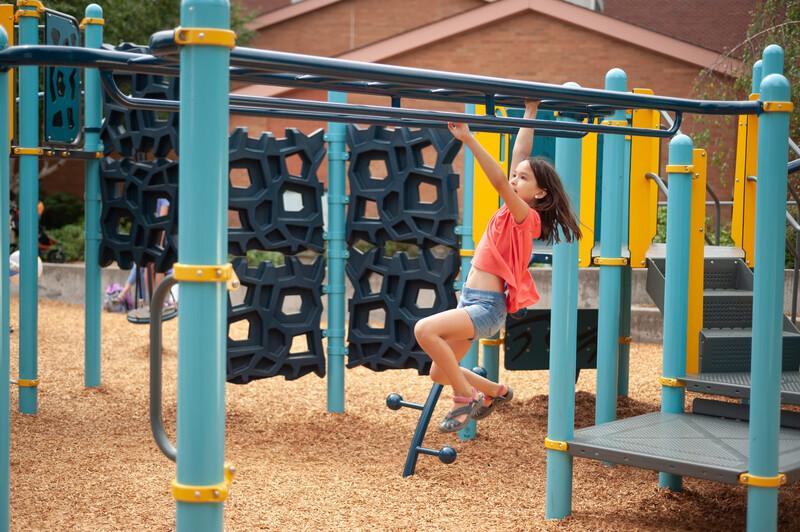[video: scene fades into a top down view of a boy as he climbs across the Overhead Parallel Bars attached a set of playground monkey bars. The camera zooms in as a girl reaches the end of the monkey bars transfer ladder. Scene switches to a close-up elevated view as another girl swings back and for on the Overhead Parallel Bars. Scene switches to an elevated view of a young boy as he swings across the playground monkey bars. Scene switches to a ground view up to a young girl as she swings sideways on one of the Overhead Parallel Bars connected to the playground monkey bar set. Scene switches to a view down the monkey bars to a boy as he swings from the Overhead Parallel Bars. Scene switches to the camera focuses on the ground of a child’s shadow hanging on the Overhead Parallel Bars. The girl’s feet dangle at the top of the screen as she swings from a single Overhead Parallel Bar. Scene switches to a close-up of the top of the monkey bars as a boy swings across the rungs in slow motion. Scene switches to a ground view up to a girl as she swings sideways on one of the Overhead Parallel Bars. Camera switches to a ground view up of a boy’s back as he swings from the rung of the monkey bars and the left side Overhead Parallel Bars. Scene fades to black.]