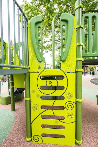 - Uniquely designed laser-cut perforated steel and polyethylene handholds help kids transition from climber to deck