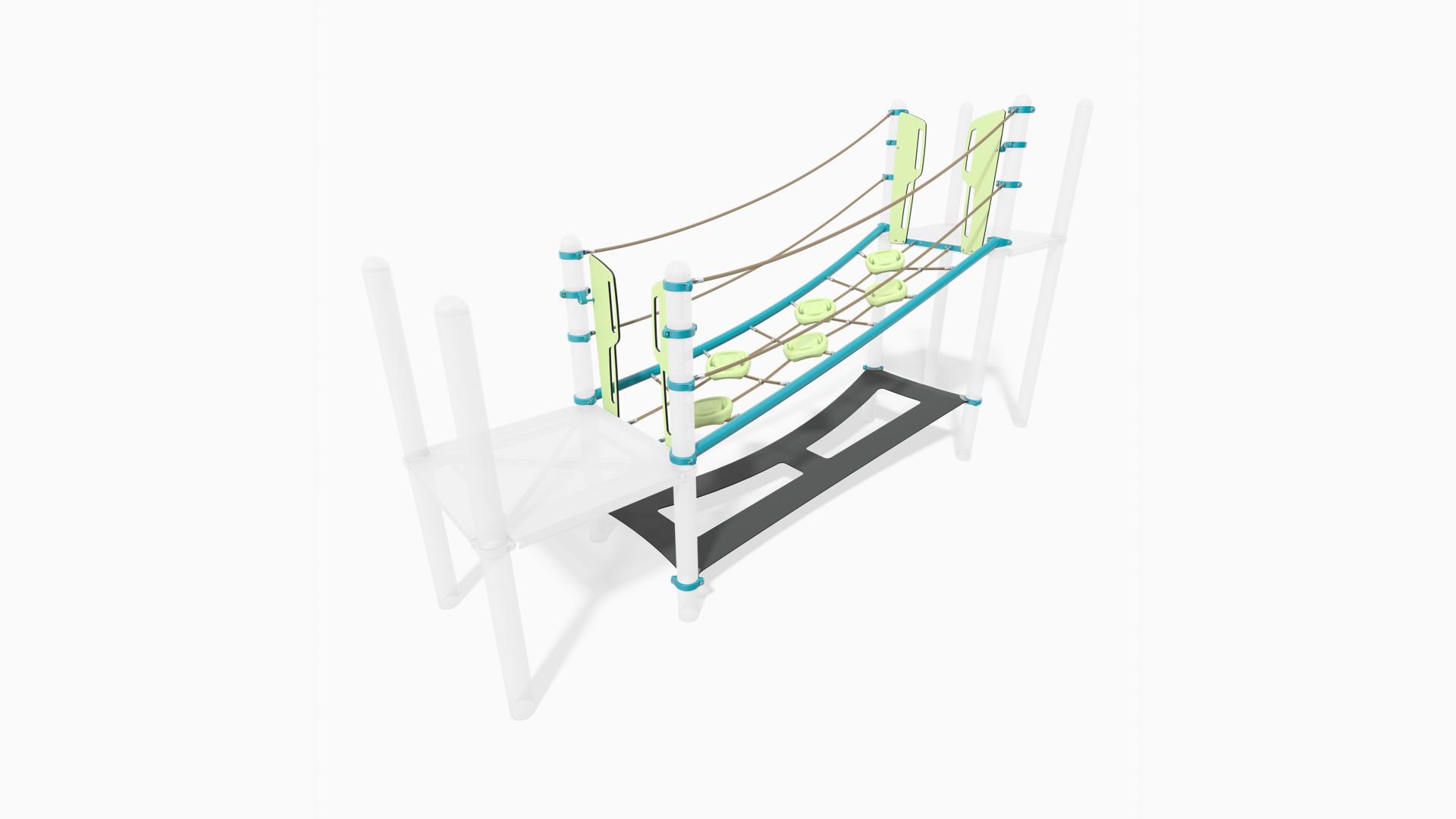 - Pods and cables are combined to create an elevated route that challenges balance and coordination