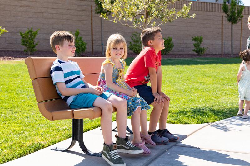 The Recycled Contour Series Bench provides a comfortable place to watch the kids in action.Features
