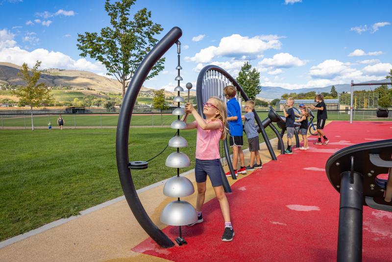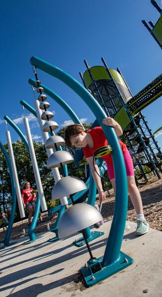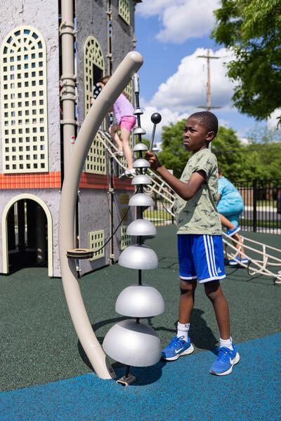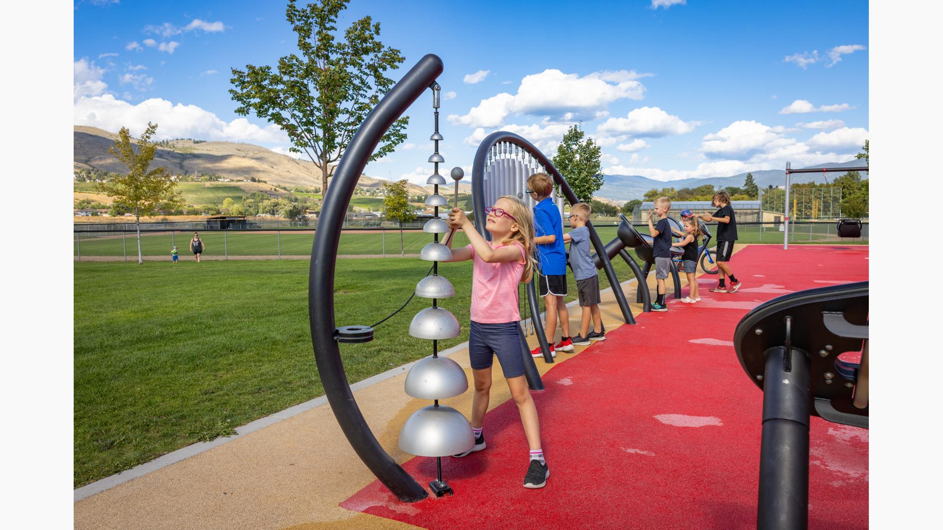 [video: young girl plays Rhapsody Cascata Bells in declining scale. Young boy plays configuration of different sized bells. Fades to black]