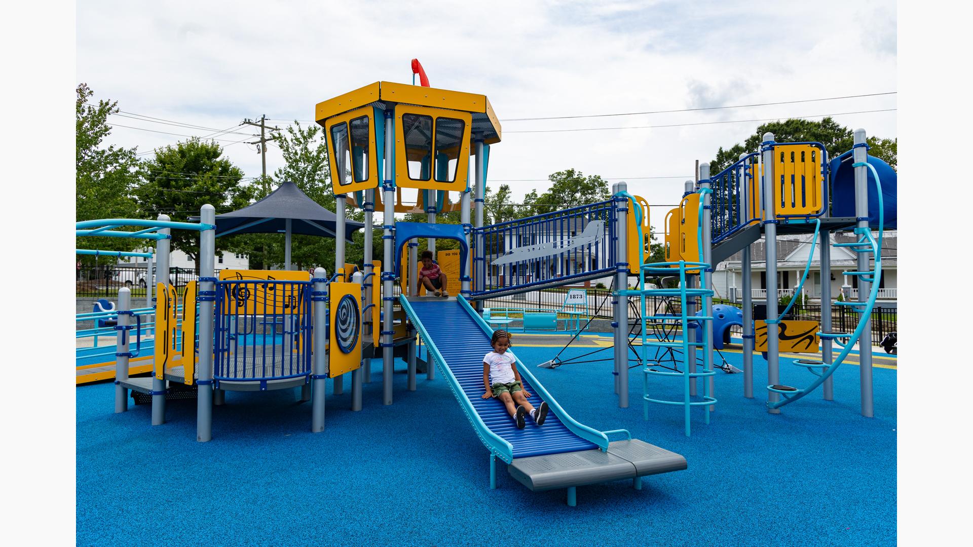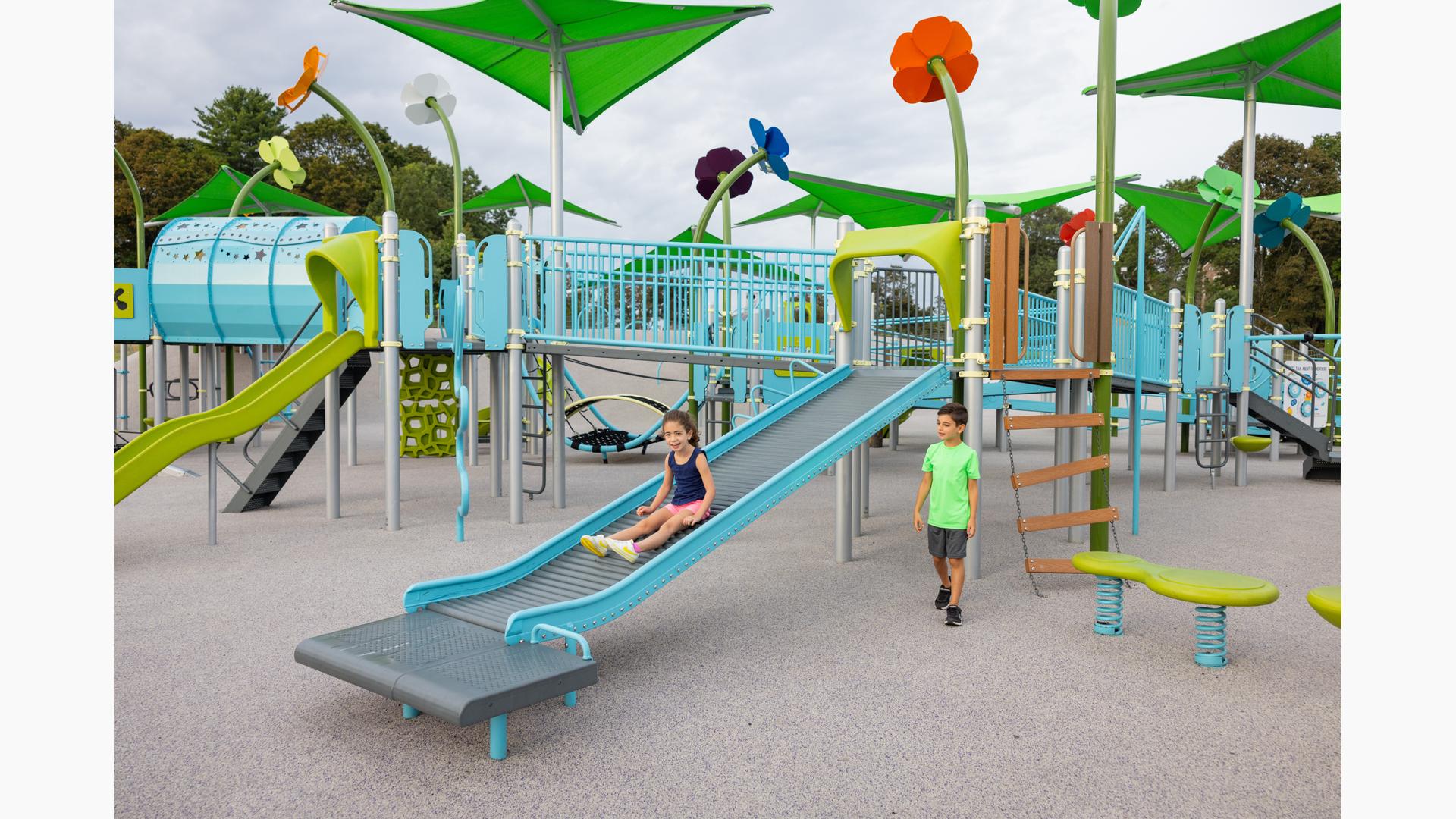 Bench provides additional space for those needing extra time or room to exit the Rollerslide.Features