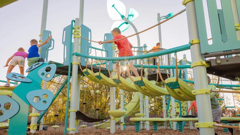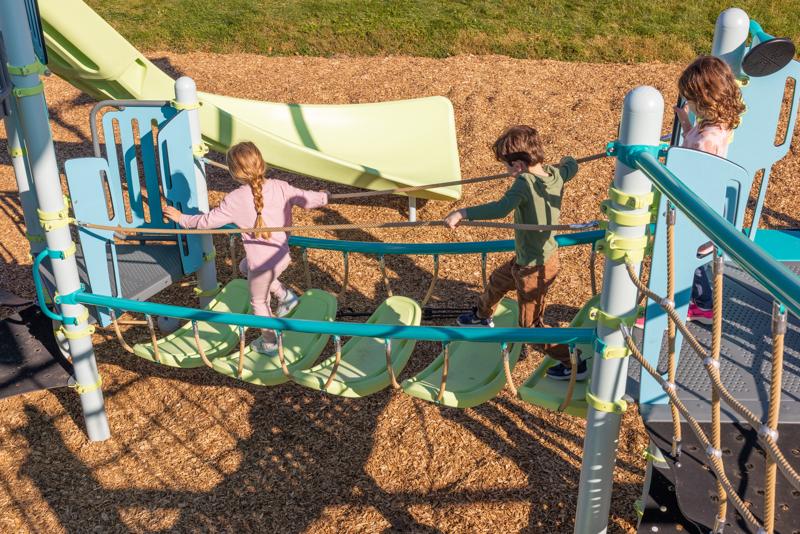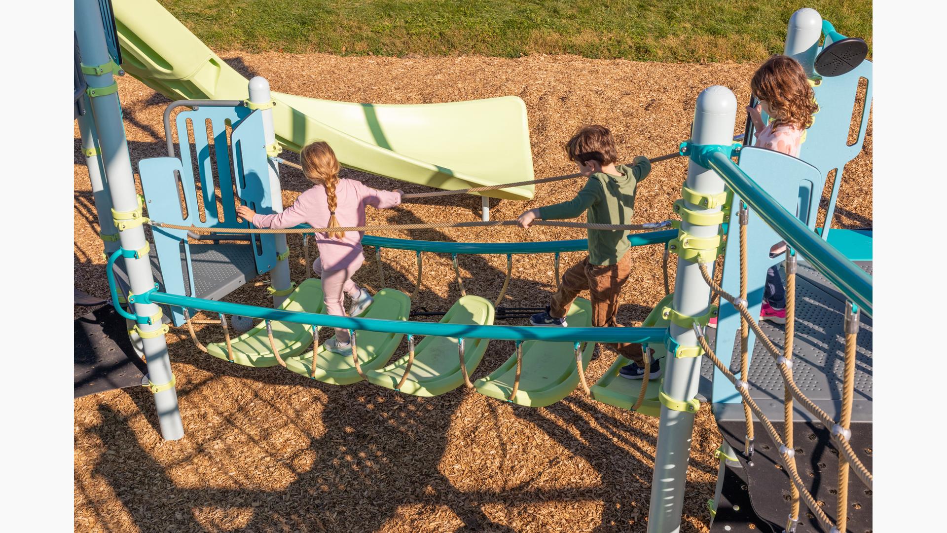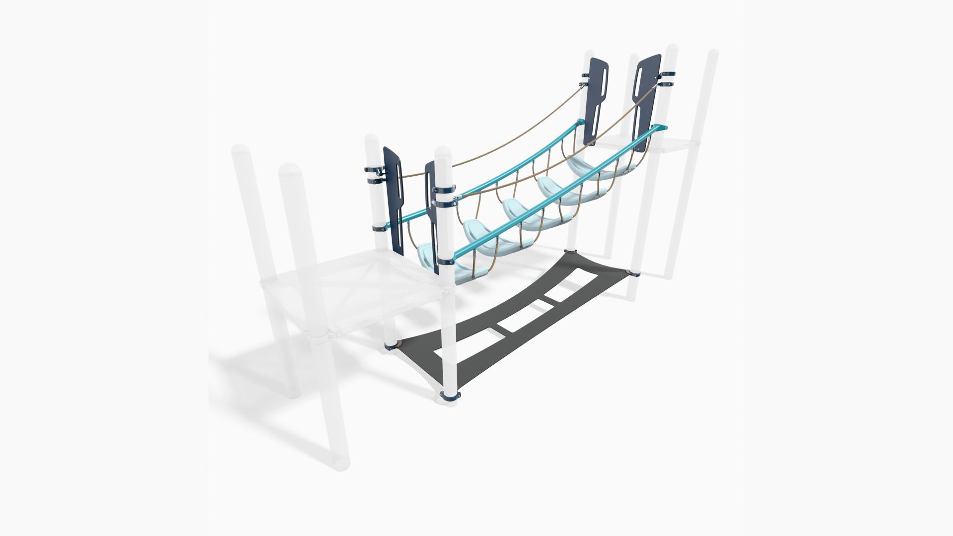 The PlayBooster® SaddleStep™ Climber invites kids to hop across a series of suspended saddle steps that move and sway with every step. As children navigate from saddle to saddle, they'll discover the thrilling challenge of crossing a path that's never quite still. This dynamic climber transforms the journey between PlayBooster decks into an engaging balancing adventure that builds confidence, coordination, and tons of smiles for kids ages 5 to 12.Features