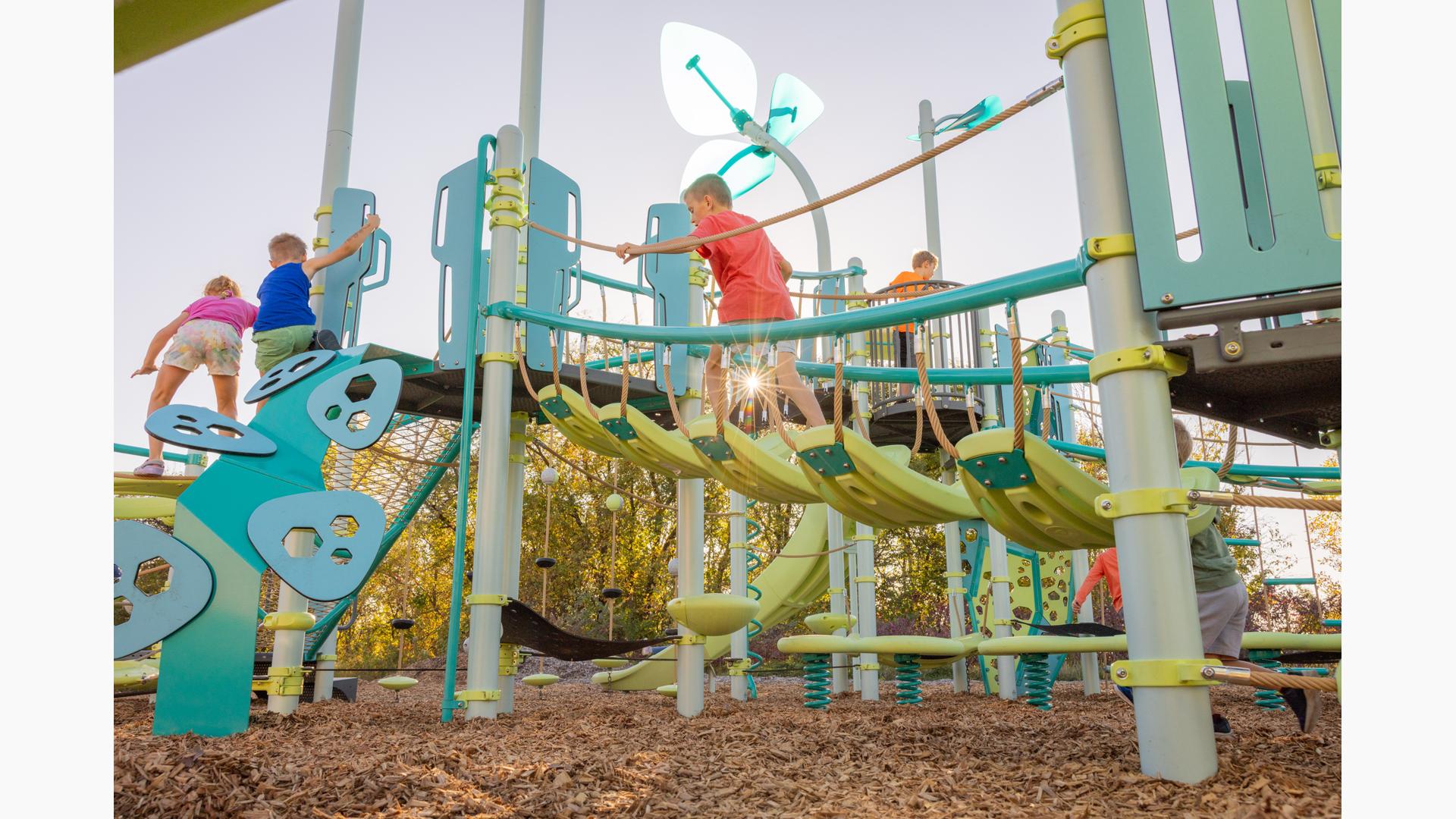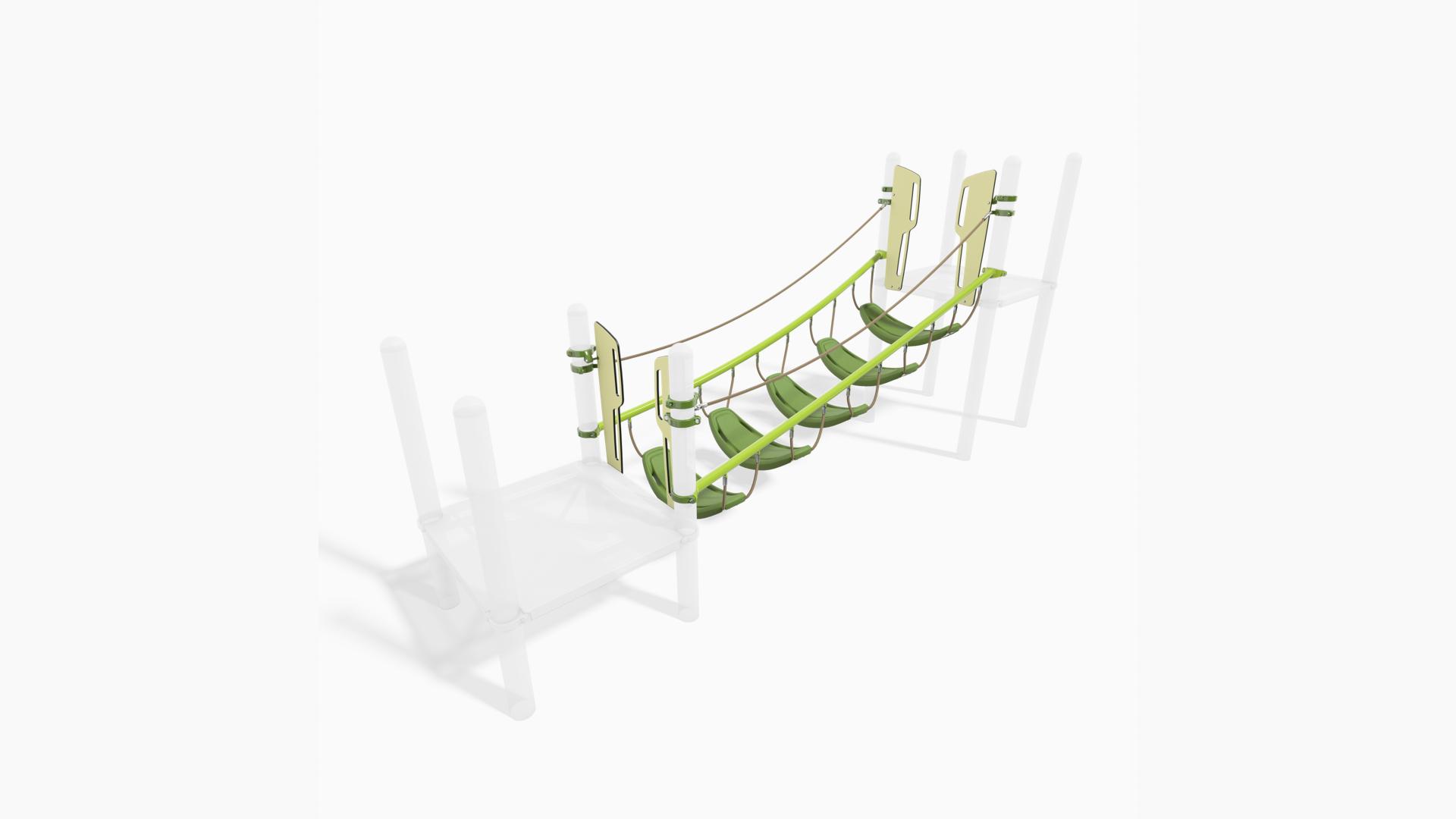 - Pods and cables are combined to create an elevated route that challenges balance and coordination