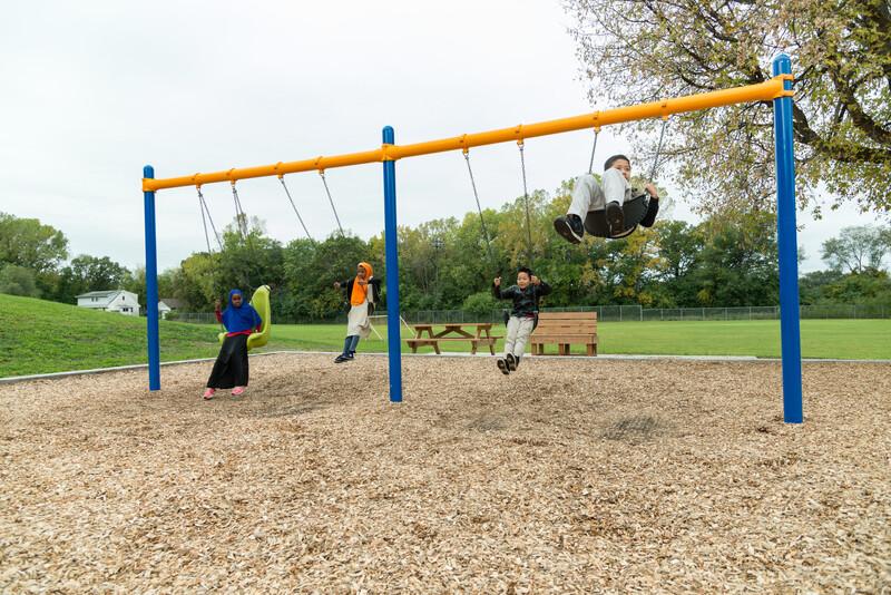 - Accommodates two swings per bay
