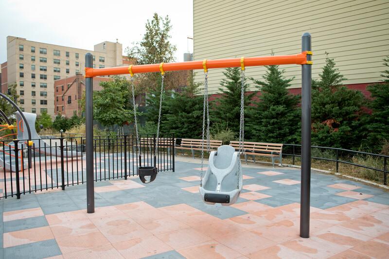 - Accommodates two swings per bay