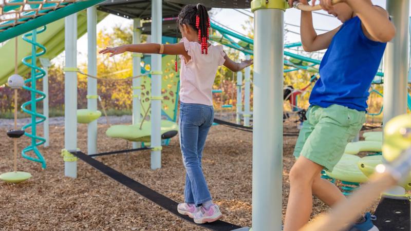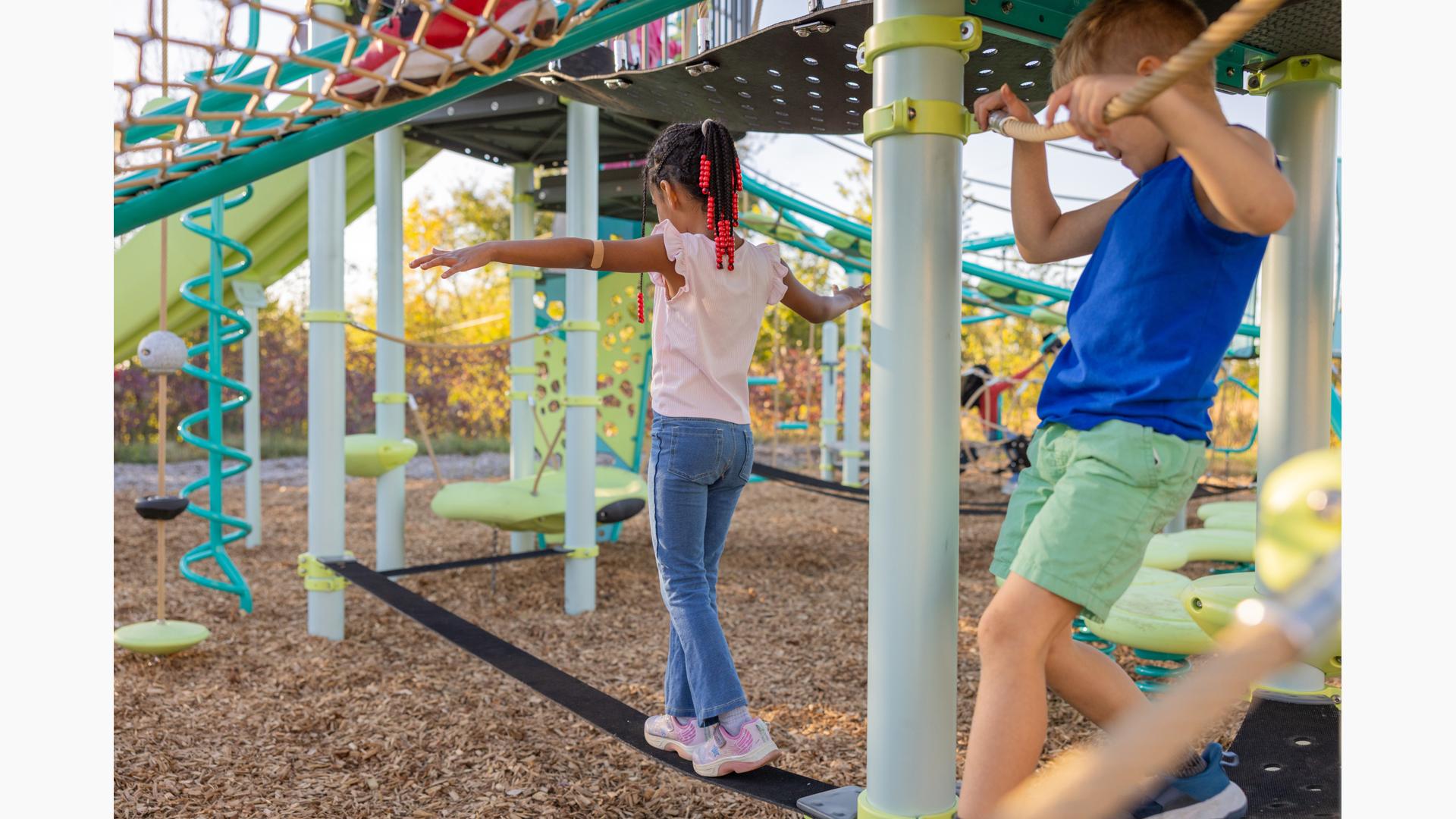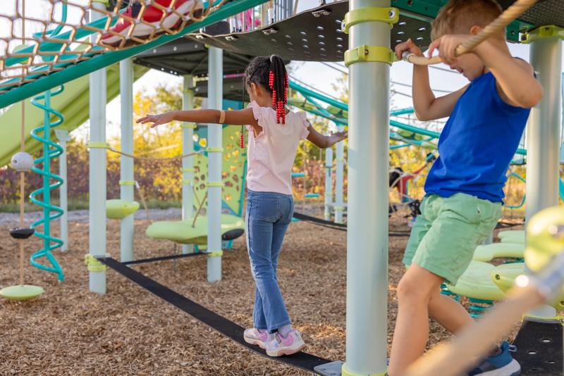 The Slack Line delivers ground-level balance training for any PlayBooster® playstructure. Designed for ages 5 to 12, it challenges coordination and core strength while maximizing underutilized spaces with multiple length options. The design promotes creative problem-solving as kids discover their own crossing techniques and build confidence along the way.Features
