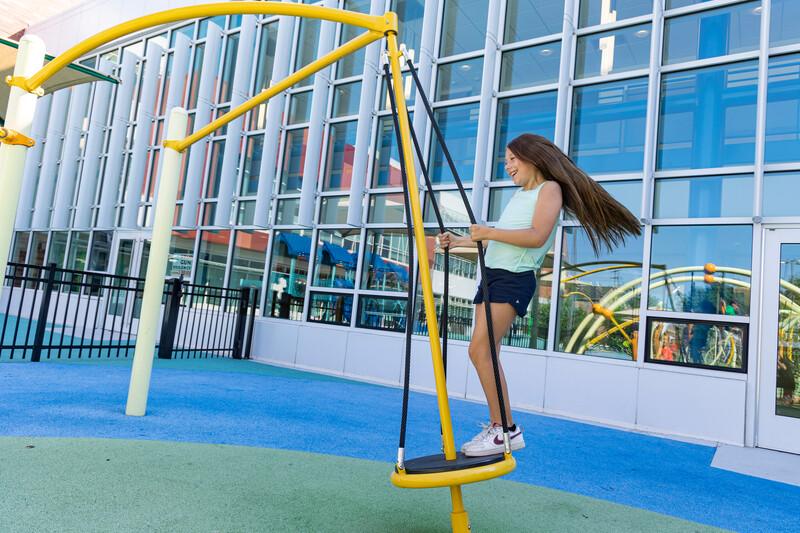 The freestanding Sol™ Spinner provides the valuable spinning motion kids need for healthy growth and development. Plus, it's just plain fun! Multiple kids can work together to counter balance the Sol Spinner to make it go – fast!