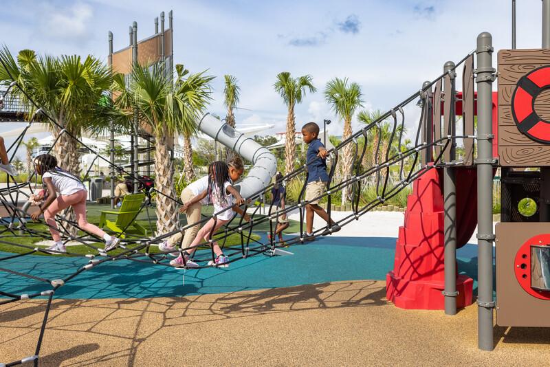 Video features a PlayBooster playground rope SpaceLink Climber.