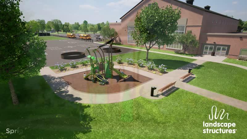 Video features an animated view of the new Landscape Structures Sprig nature inspired play structure.