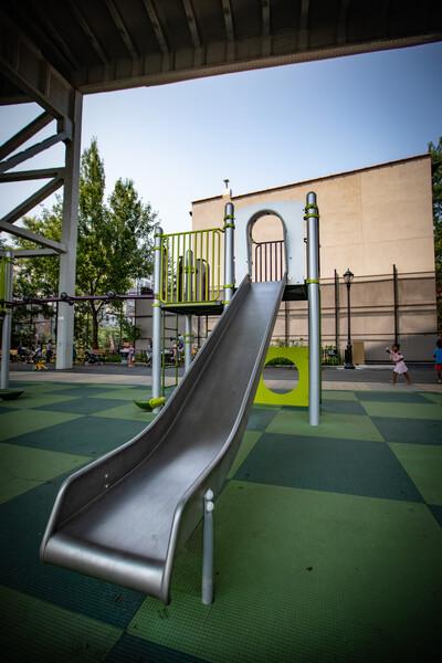 The PlayBooster® Stainless Steel Slide with SteelX® Hood is a playground favorite that kids love. The stainless steel bedway does not emit a static charge, so it's a good choice for kids with cochlear implants.